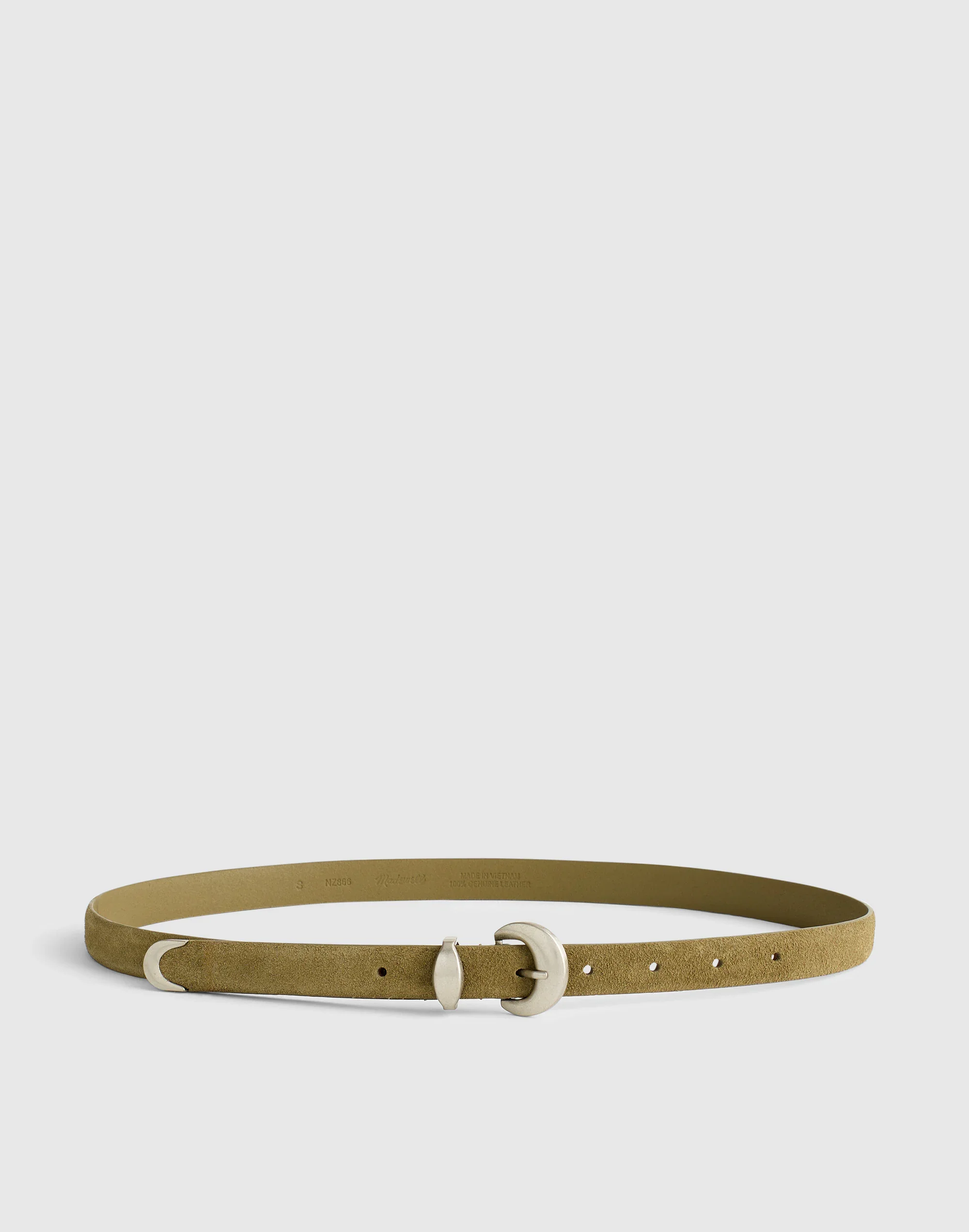 Crafted from supple suede with a three-piece metal hardware design, this everyday belt features a domed buckle. Pair it with your favorite denim for an effortless feel. - Meant to be worn at the waist. - Width: 2/3". - 100% suede. - Spot clean. - Imported. - Select stores. - Item NZ866