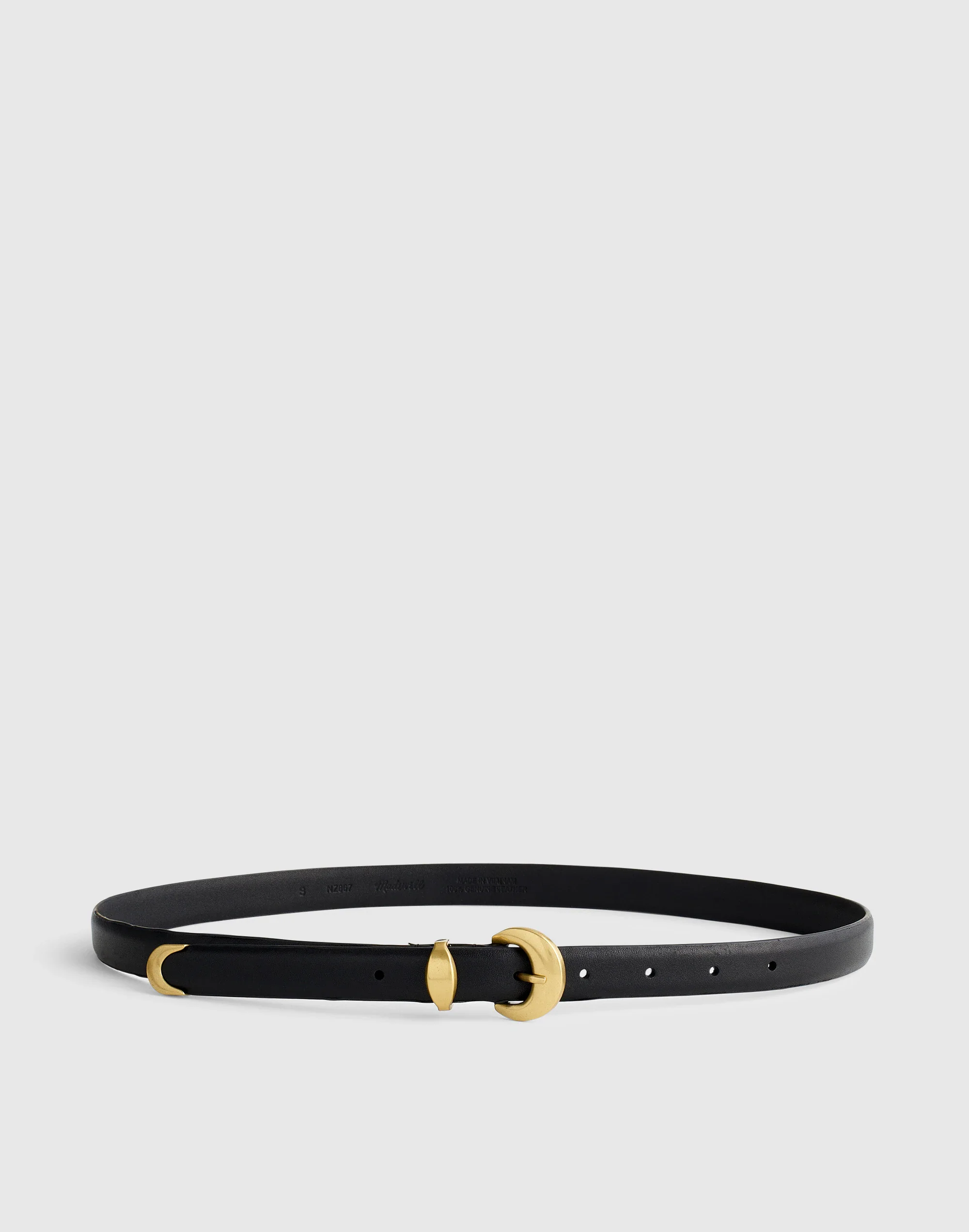 Crafted from smooth leather with a three-piece metal hardware design, this everyday belt features a domed buckle. Pair it with your favorite denim for an effortlessly cool feel. - Meant to be worn at the waist. - Width: 2/3". - 100% leather. - Spot clean. - Imported. - Select stores. - Item NZ867