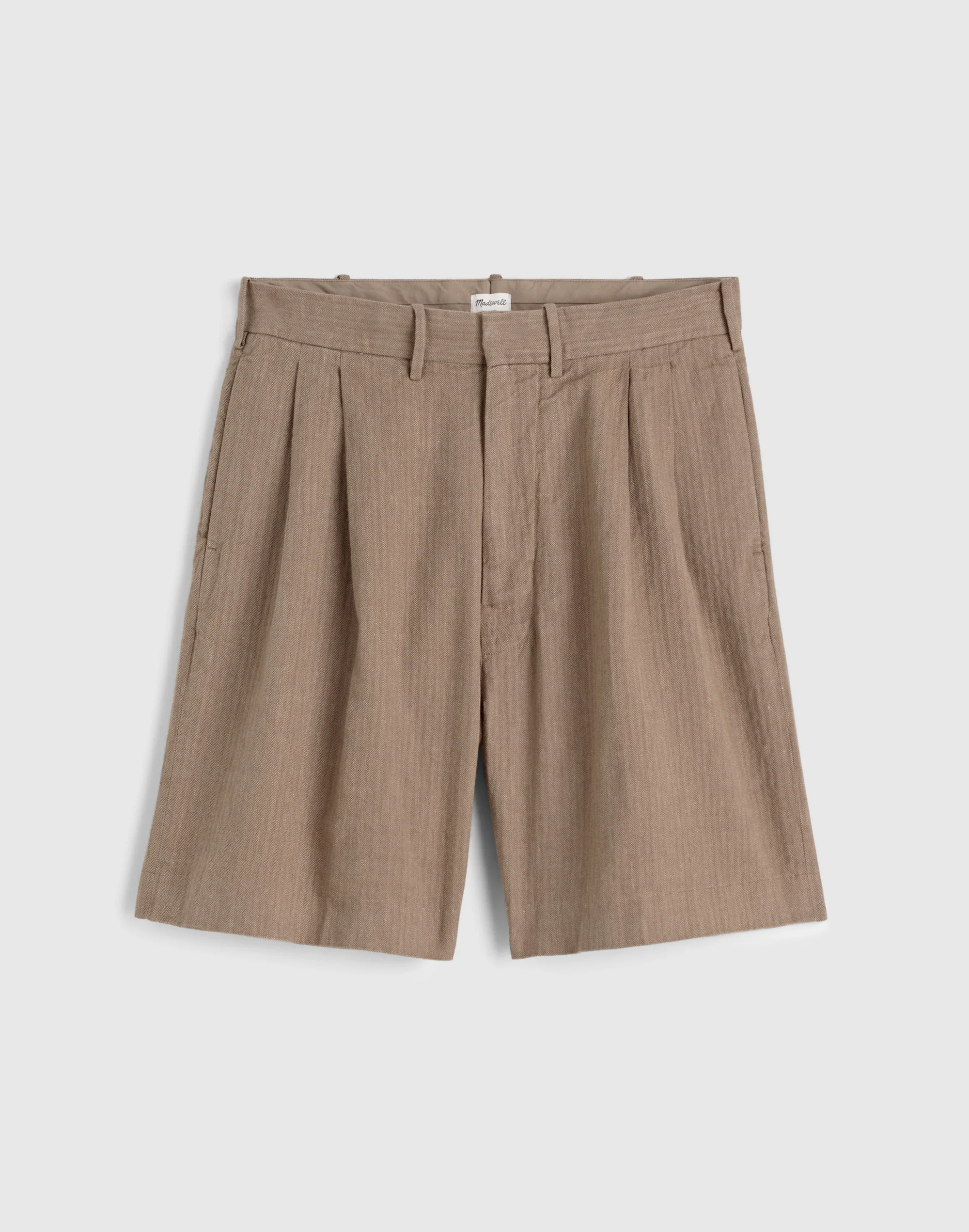 Double-Pleated Shorts in Herringbone Linen-Cotton Blend