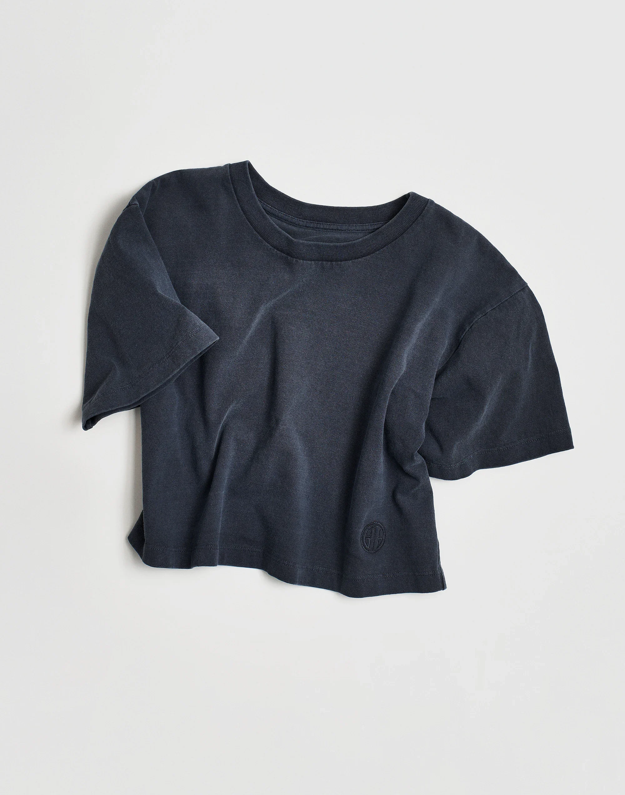 A limited-edition denim capsule designed by Benjamin Talley Smith and handcrafted by artisans in Los Angeles using imported fabric. Our classic boxy crop tee is made from 100% cotton jersey that offers structure and shape. Pair it with the Coolidge Low-Rise Wide-Leg Jean for a balanced look. - Boxy fit. - Crop length: designed to hit low on the ribcage and show a hint of skin. - Body length from high point of shoulder: 18 3/4". - 100% cotton. - Spot clean. - Imported. - Select stores. - Item NZ184