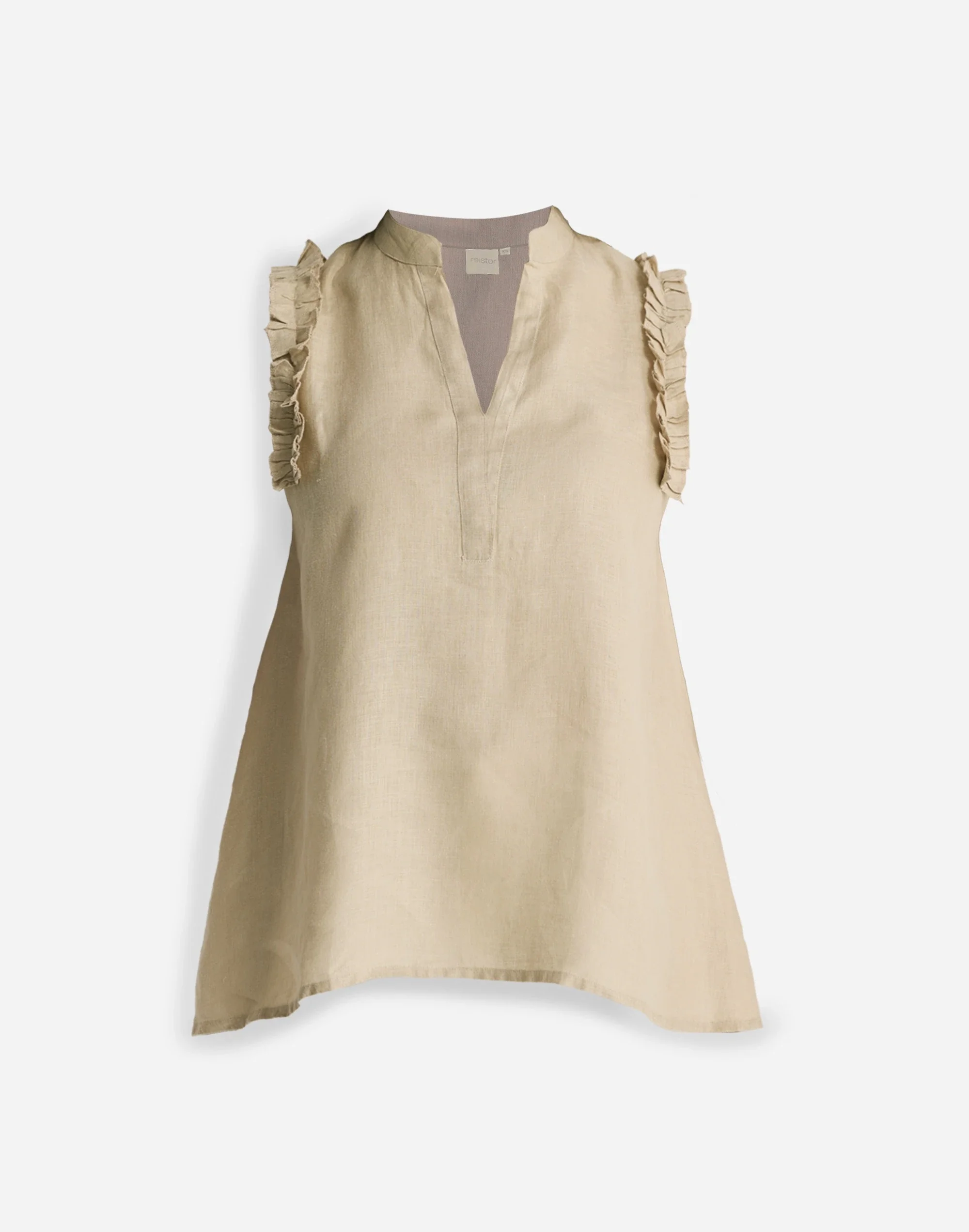 Reistor® Sleeveless 100% Hemp Top with Ruffles in Neutral Beige