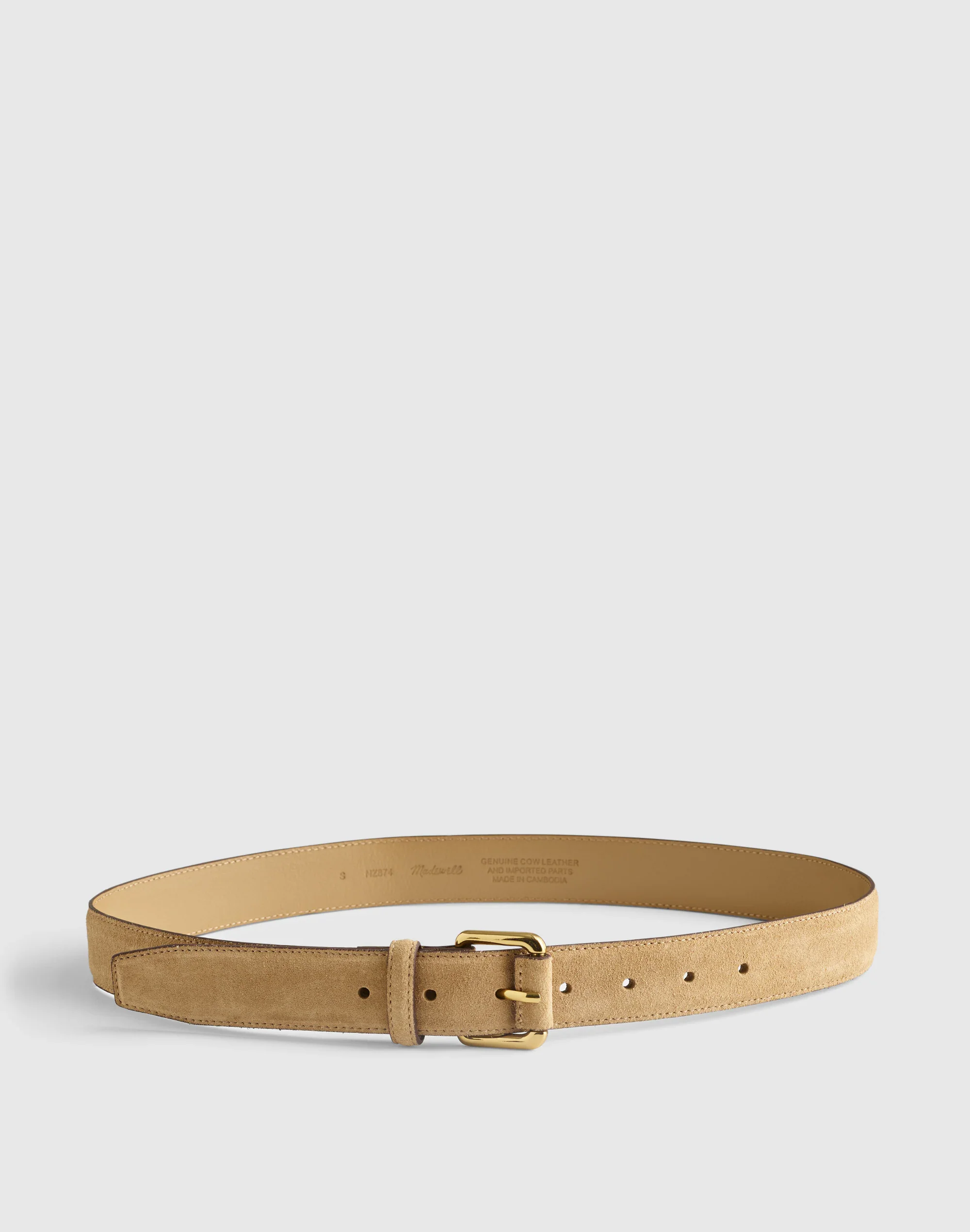 Crafted from suede, this belt features a covered roller-bar buckle for a clean finish. A subtle upgrade to an everyday essential. - Meant to worn at the waist. - Width: 1 1/5". - 100% leather. - Do Well: leather sourced from a tannery that was certified by the Leather Working Group (LWG), an organization that works to promote sustainable environmental practices in the leather industry. - Spot clean. - Imported. - Select stores. - Item NZ874