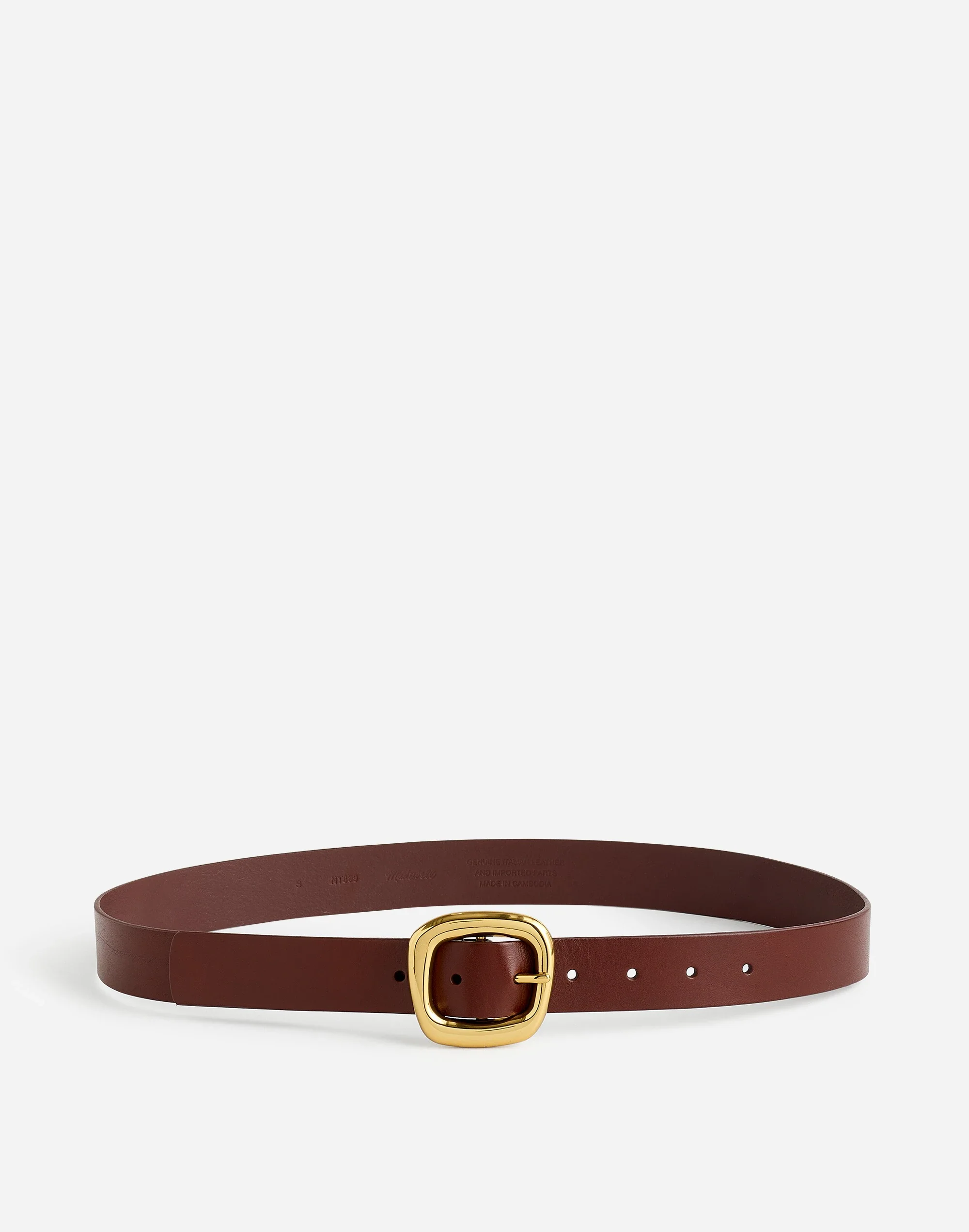 This leather belt goes perfectly with skirts and trousers alike, and its sculptural buckle adds an artful twist to your look. - Designed to be worn at the hips. - Width: 1 1/5". - 100% leather. - Do Well: leather sourced from a tannery that was certified by the Leather Working Group (LWG), an organization that works to promote sustainable environmental practices in the leather industry. - Spot clean. - Imported. - Select stores. - Item NT809