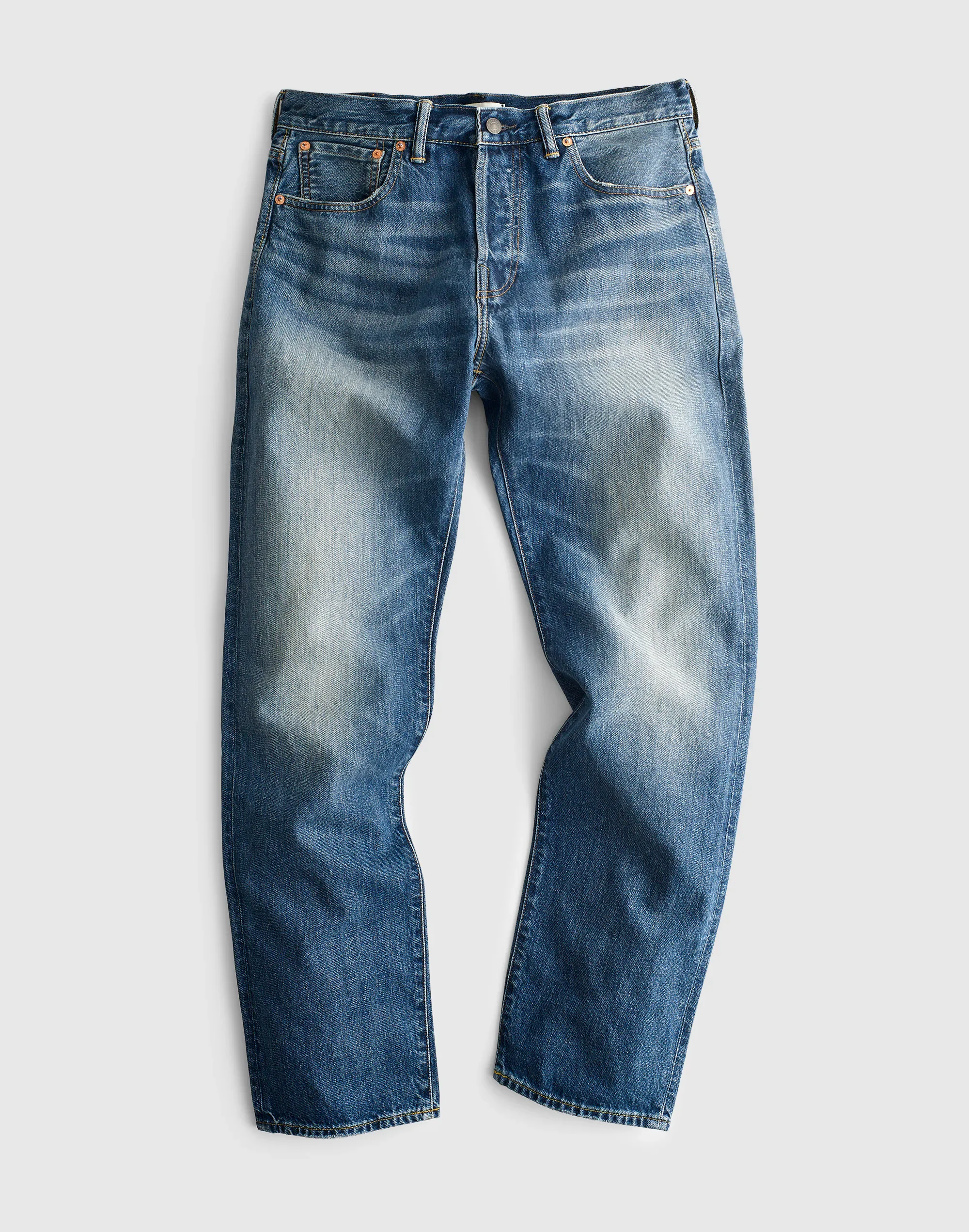 The cut: our '90s-inspired fit is just what you need. A cool balance between throwback and modern, these jeans are relaxed through the hip and thigh with classic straight legs. The fabric: 100% rigid cotton denim with zero stretch. - Straight Fit. - Rise: 11 1/2"; leg opening: 15 1/2". - 100% Regenagri® certified cotton. - Do Well: Regenagri® cotton fibers are regenerative-certified, derived from sustainable techniques meant to restore natural ecosystem functions and support farms and organizations across the supply chain. - For each item made at the Fair Trade Certified™ factory, we contribute to a Community Development Fund managed by the workers. - 13 oz. - Button fly. - Machine wash. - Imported. - Item NY974