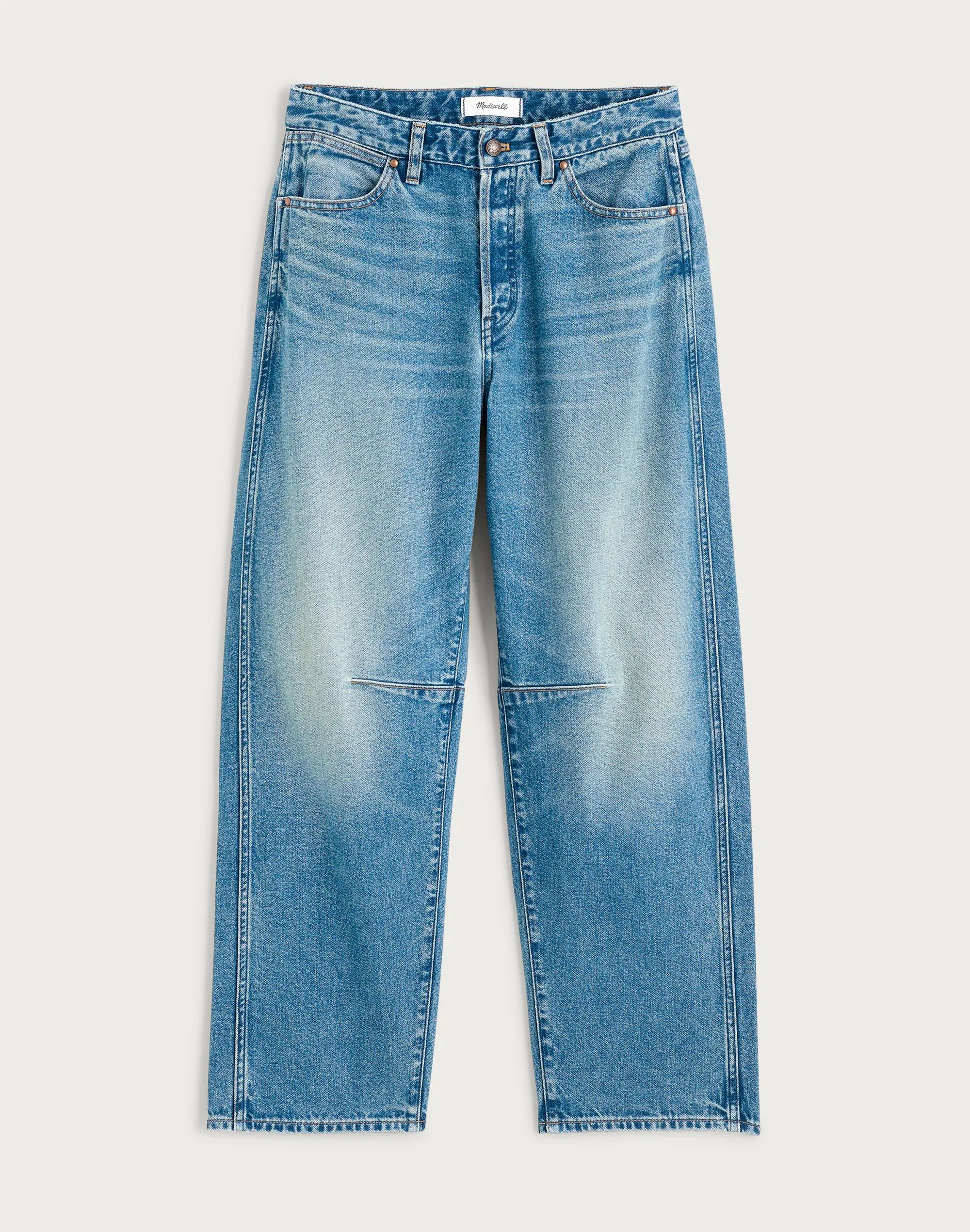 The cut: roomy at the seat, thigh and rise, these barrel-leg jeans are designed intentionally to be worn low slung at the hips and have darts at the knees for an articulated curved look. Designed for an hourglass shape (see: narrower waist with a contoured band, a longer rise and a little extra room at the hips and thighs). - The fabric: blended with TENCEL™ Lyocell, this premium cotton Cone® denim with old-school character and zero stretch. - 11 1/4" rise, 16 3/4" leg opening, 26 1/2" inseam. - 85% cotton/15% TENCEL™ Lyocell. - Do Well: for each item made at the Fair Trade Certified™ factory, we contribute to a Community Development Fund managed by the workers. - Button fly. - Machine wash. - Imported. - Select stores. - Item NZ118