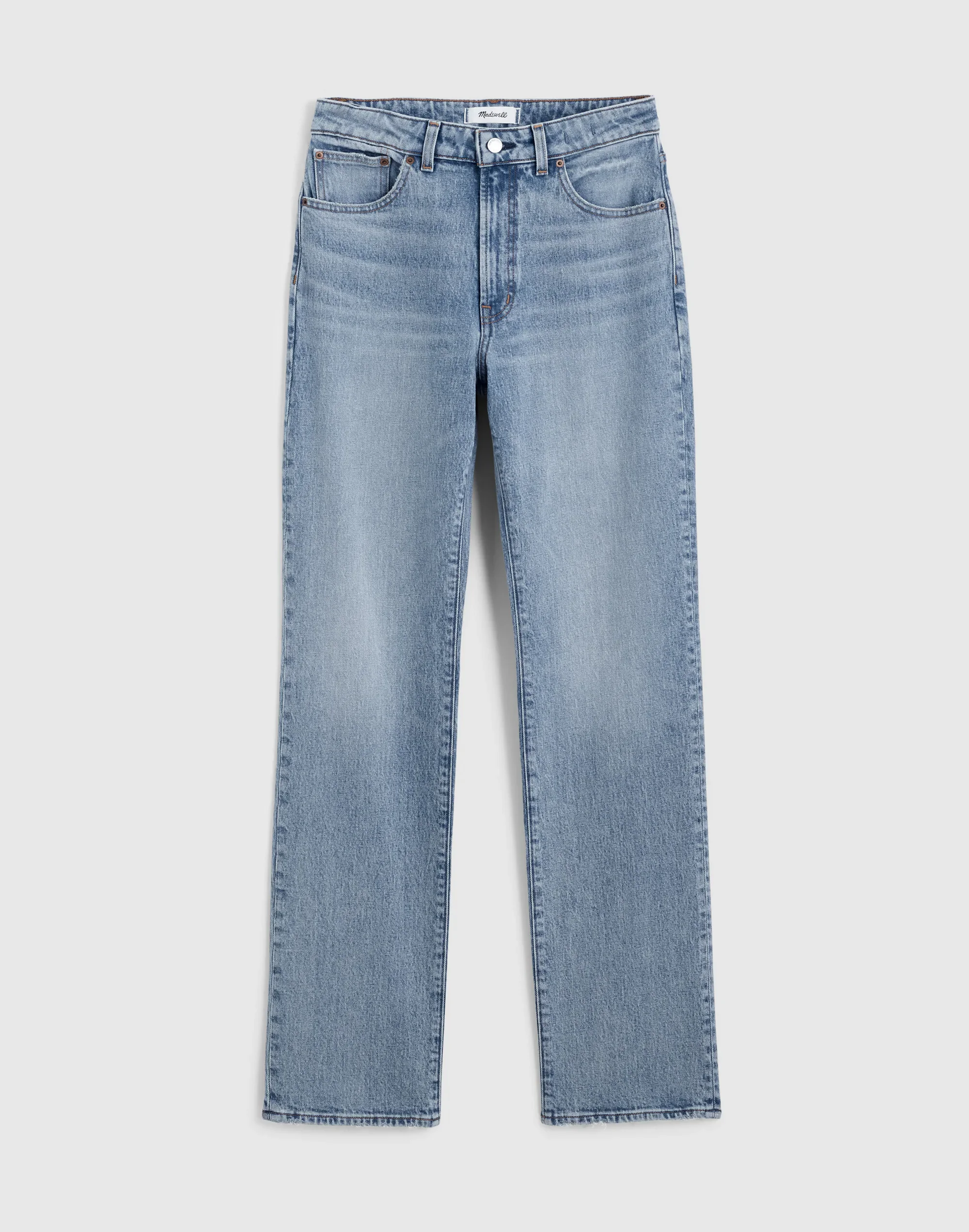 The cut: anchored at the waist and fitted through the hips and thighs with an easy, straight leg and full-length inseam, these jeans are finished with the holds-you-in feel of our Magic Pockets™ in front. This pair is designed for an hourglass shape (see: narrower waist with a contoured band, a longer rise and a little extra room at the hips and thighs). - The fabric: premium Cone® denim, offering the holds-you-in structure of rigid jeans, with a touch of stretch for day-one comfort. - 11" rise, 15 1/2" leg opening, 30" inseam. - 99% cotton/1% elastane. - Zip fly. - Turn inside out and machine wash in cold water with like colors. - Imported. - Madewell.com only. - Item NY051