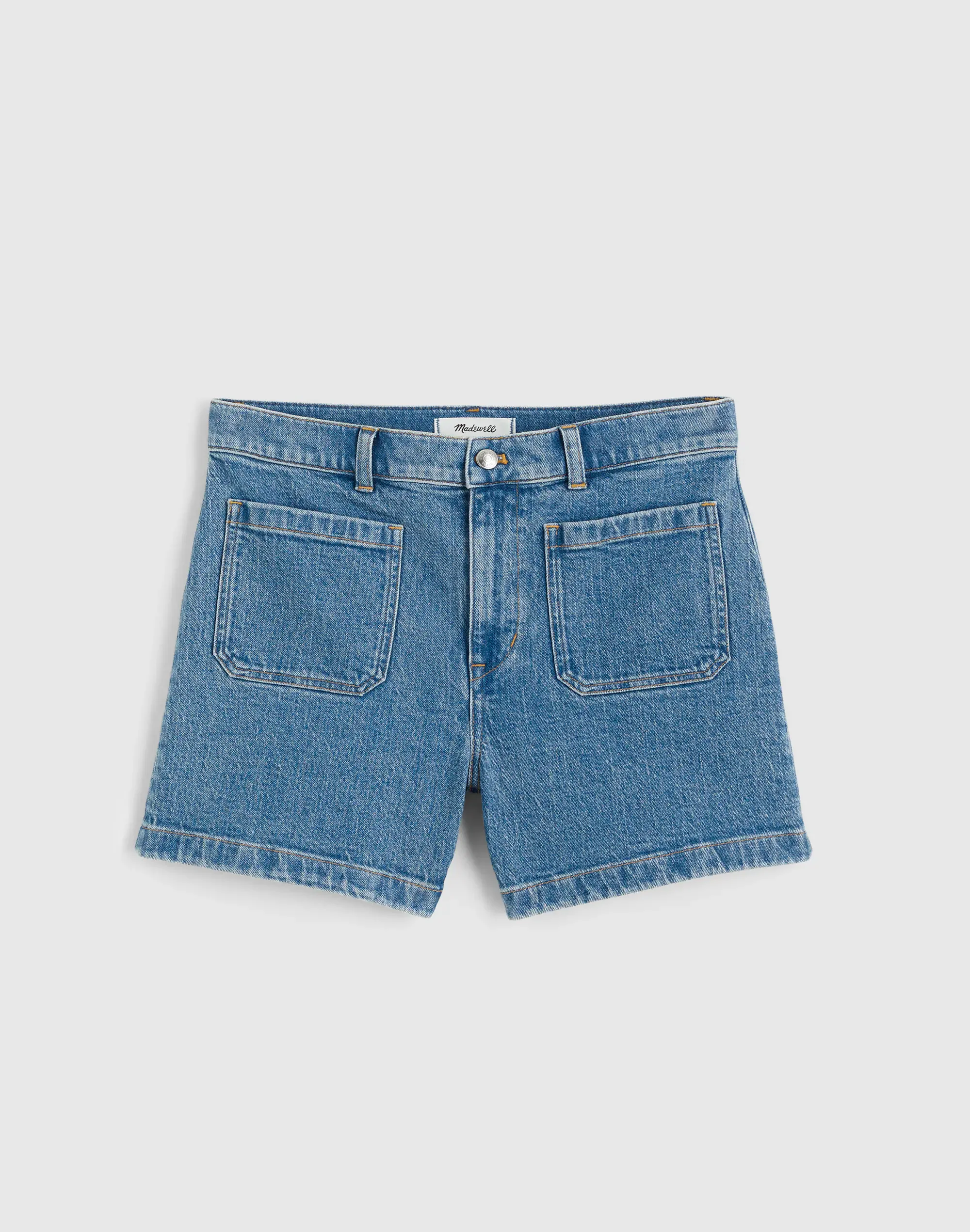 The cut: our best-selling pant returns, now in a fitted A-line short with a high rise and front patch pockets. - The fabric: combines the holds-you-in structure of rigid jeans with a touch of stretch for day-one comfort. - 10 1/2" rise, 4" inseam. - 99% cotton/1% elastane. - Do Well: for each item made at the Fair Trade Certified™ factory, we contribute to a Community Development Fund managed by the workers. - Machine wash. - Imported. - Item NZ130
