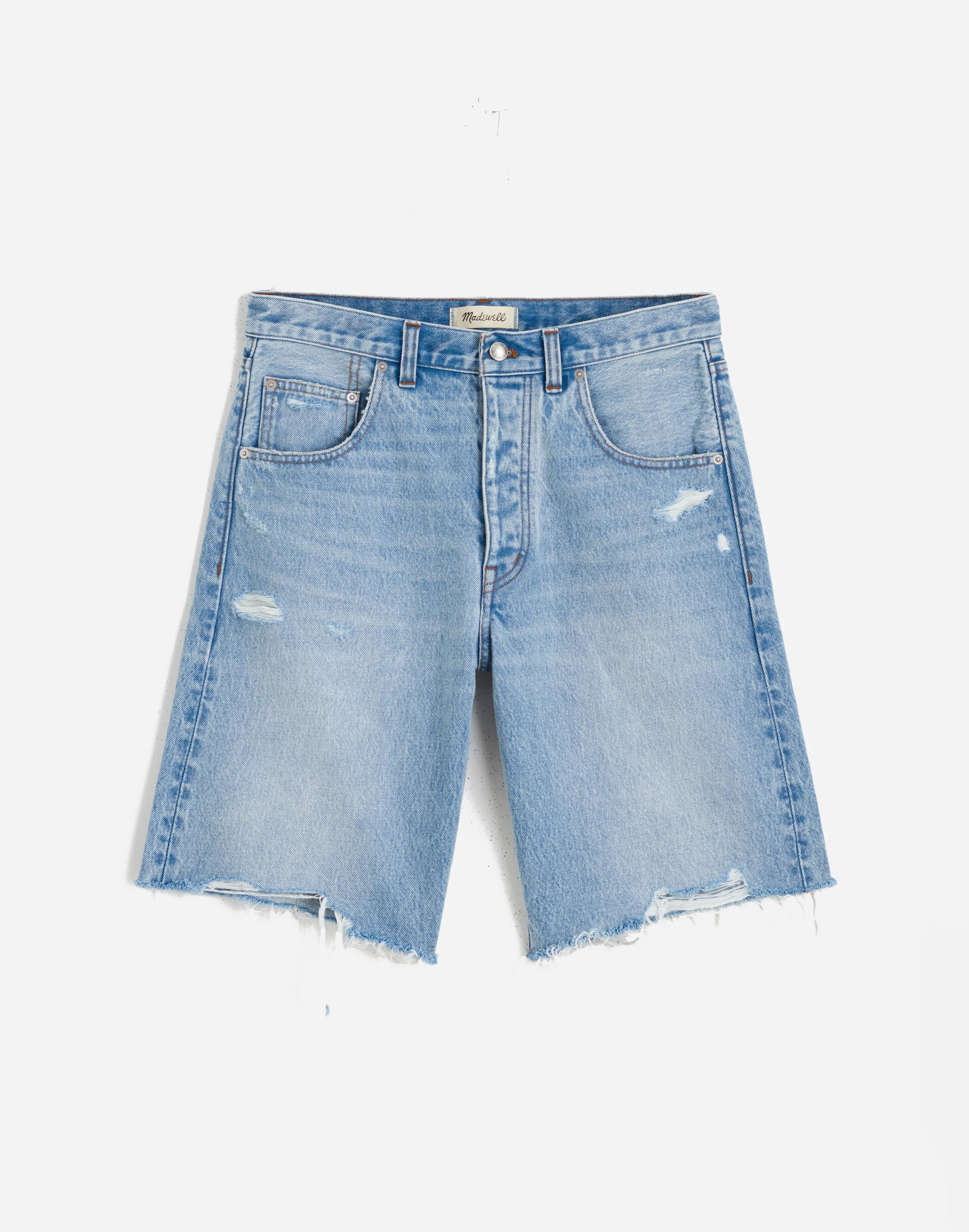 The fit: slung low for a relaxed drop at the natural waist, these long shorts are easy through the hips and thighs with a baggy leg and raw-edge hem for a lived-in feel. Effortless and versatile, this pair strikes the perfect balance of style and comfort. - The fabric: premium 100 percent cotton Cone® denim with old-school character and zero stretch. - 11 1/2" rise, 9 1/4" inseam. - 100% cotton. - Do Well: for each item made at the Fair Trade Certified™ factory, we contribute to a Community Development Fund managed by the workers. - Button fly. - Machine wash. - Imported. - Item NU026