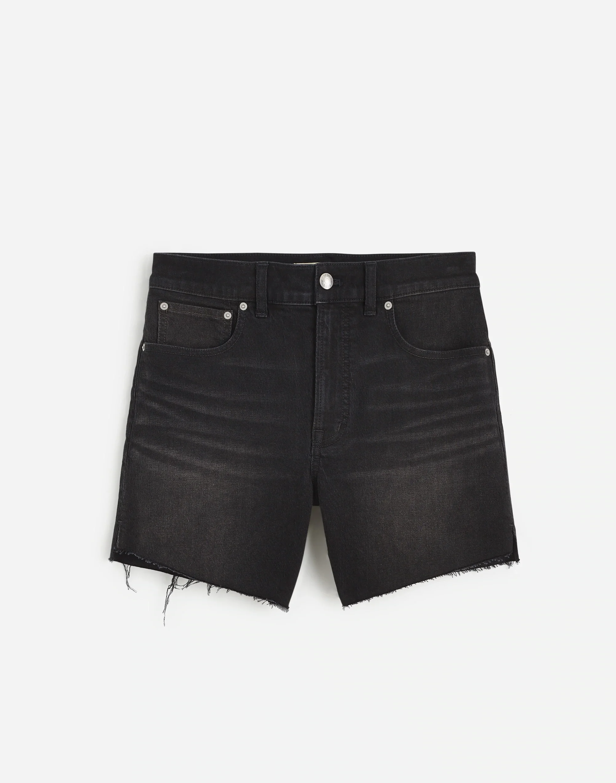 The cut: these vintage-inspired mid-length shorts feature a raw stepped hem, plus our signature Magic Pockets™ in front for a supportive, holds-you-in feel. With a high waist and a curve-enhancing back, this pair offers a relaxed fit that flatters from every angle. - The fabric: vintage-y structured denim with a touch of stretch for a broken-in feel. - 10 1/2" rise, 5" inseam. - 99% cotton/1% elastane. - Machine wash. - Imported. - Madewell.com only. - Item NT971