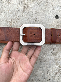**Not confirmed authentic — please consider before purchasing (please refer all photos) Retro pop meets statement leather. This embossed belt channels that classic Hysteric energy with its cartoon-style face graphics all over. Chunky brown leather with a bold silver-tone octagon buckle • Waist fit : 33–37” • Total length : 109.5 cm • Condition : Very good, minor signs of wear • Material : Likely genuine leather *I will ship within 1-3 days after cleared payment 📦 Ships worldwide from Thailand with tracking number. 💬 DM for questions or measurements. ✅ Accepting offers — no returns / no exchanges.