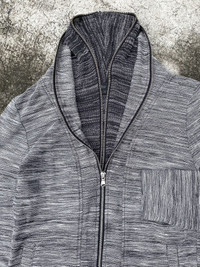 Minimal yet edgy zip-up knit from Japan's in the attic. Features dual front zips — one functional, one decorative — adding subtle structure to the neckline. Gray streaked knit gives it a soft yet modern, technical look. Tagged size M. Excellent condition. Pairs effortlessly with slim black pants, cargos, or flared trousers. Can lean streetwear or minimal techwear depending on styling. That double zip and collar detail gives real Japanese avant-street energy. • Brand : in the attic (Japanese Brand) • Size : Tagged M (fits true to size) • Condition : 9/10 excellent, no flaws • Color : Grey with tonal streaks Highlight - Dual zipper front - Stand collar design - Full zip closure *I will ship within 1-3 days after cleared payment 📦 Ships worldwide from Thailand with tracking number. 💬 DM for questions or measurements. ✅ Accepting offers — no returns / no exchanges. #intheattic #japanesebrand #japanesefashion