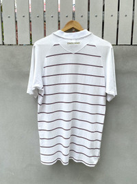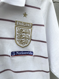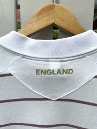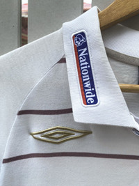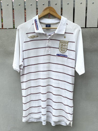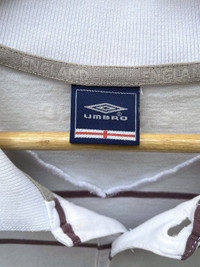 Rare official England National Team polo shirt by Umbro, believed to be from the 2002–2003 era. Made in collaboration with Descente, Japan. Features Nationwide sponsor patches on the collar and chest, gold-stitched Umbro logo, and a clean striped design throughout. Great for fans of early 2000s football style, terrace casualwear, or collectors of vintage England kits. Crisp collar, full embroidered crest, and subtle embroidered “ENGLAND” detail inside the collar. Spare button included. • Brand : Umbro • Era : 2002~2003 • Size : Tagged L/XL • Condition : Excellent vintage condition, have 1 stain (can wash) • Made in China (by Descente Japan) • Color: White with maroon stripes • Sponsor : Nationwide • Tag : Official Licensed Product *I will ship within 1-3 days after cleared payment 📦 Ships worldwide from Thailand with tracking number. 💬 DM for questions or measurements. ✅ Accepting offers — no returns / no exchanges. #umbro #football #polo #sportswear