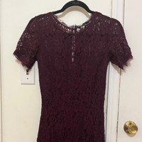 Aritzia Babaton Size 0 Wine Red Lace Short Sleeve Dress