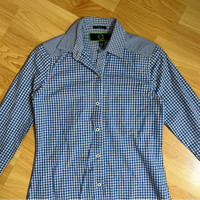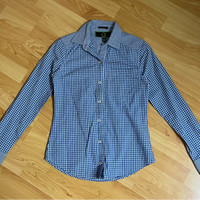 C Wonder Blue Gingham Button Down Size XXS “boy fit” - fits like XS Excellent condition Does not wrinkle in the wash 17” pit to pit 25” shoulder to hem One chest pocket