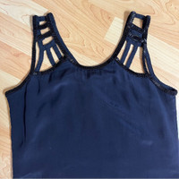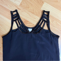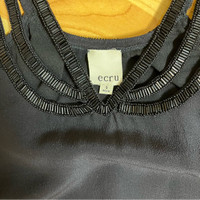 Ecru Black Cutout Dress with Neck Beading Size Small Cutout neck and shoulder Intricately beaded neckline Lined Silk Straight shift dress 35” from shoulder to hem 18.5” pit to pit Good condition! Perfect LBD! Would be happy to answer questions you may have about this item