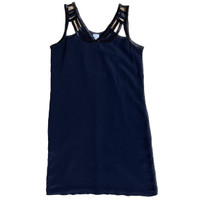 Ecru Black Cutout Dress with Neck Beading LBD