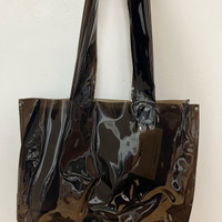 Black Vinyl Tote with Crystals Crystals form silhouette of a cat face 12” x 9” x 3” 13” handle drop One of a kind Handcrafted Ask me about my design process and inspirations!