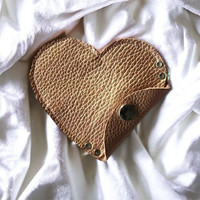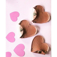 handcrafted - Pink Leather Heart Pouch | Coin purse with Snap