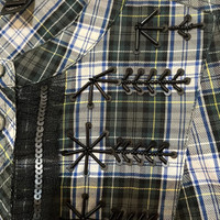 J. Crew Plaid Button Down/Tunic with Black Beading/Embellishments