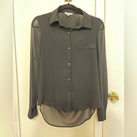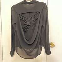 Naked Zebra Black Button Down with Crisscross Back Size small Button Down Front Drapey Back with Beautiful Crisscross straps detail Great condition! Business in front, party in the back? Would be happy to answer questions you may have about this item