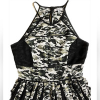 Parker Camouflage Pleated Dress Size XS Mix fabric panel pleated skirt Lined Side zipper 34” shoulder to hem 16” pit to pit Good condition! Would be happy to answer questions you may have about this item