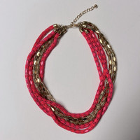 Pink and Gold Multi-Chain Chunky Necklace