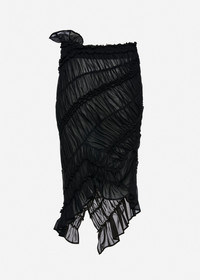 A knee-length skirt crafted entirely from softly ruched panels, creating a sculptural, body-skimming silhouette. Designed with an elasticated waistband, it features an asymmetric hem. A striking piece that balances romantic texture with a refined, contemporary edge. Details ID: 102526 Shell 100% Cotton Sizing This piece has a regular fit. Model is wearing a size 34.