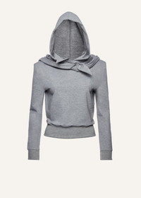 The iconic Magda hoodie is a lightweight pullover, made special with its tie hood that folds under the chin. Available exclusively at magdabutrym.com and at the flagship boutique. Details ID: 262425 Shell 70% Cotton 25% Polyester 5% Elastane. 95% Cotton 5% Elastane. Sizing This piece fits true to size. We recommend you get your regular size. Model is 180 cm and is wearing a size 34.