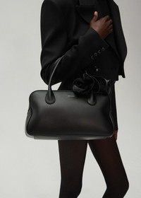 Introducing the Brigitte handbag. Inspired by the nostalgia of 90's while deeply rooted in Magda's family heritage. Its elegant silhouette, the roomy interior, two top handles and top zipper have been thoughtfully crafted in Italy. Adding a touch of on-brand dreaminess is the leather flower embellishment. Meticulously arranged and fixed onto the bag's handle. For an ideal finish curl the flower petals outward for a blooming rose effect on your bag. Details ID: 602424 Exterior 100% Calf Leather. Interior 100% Calf Leather. Sizing Approximate measurements: 19cm height, 33cm width, 13 cm depth (at bottom)