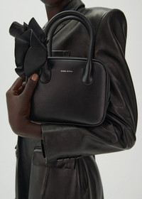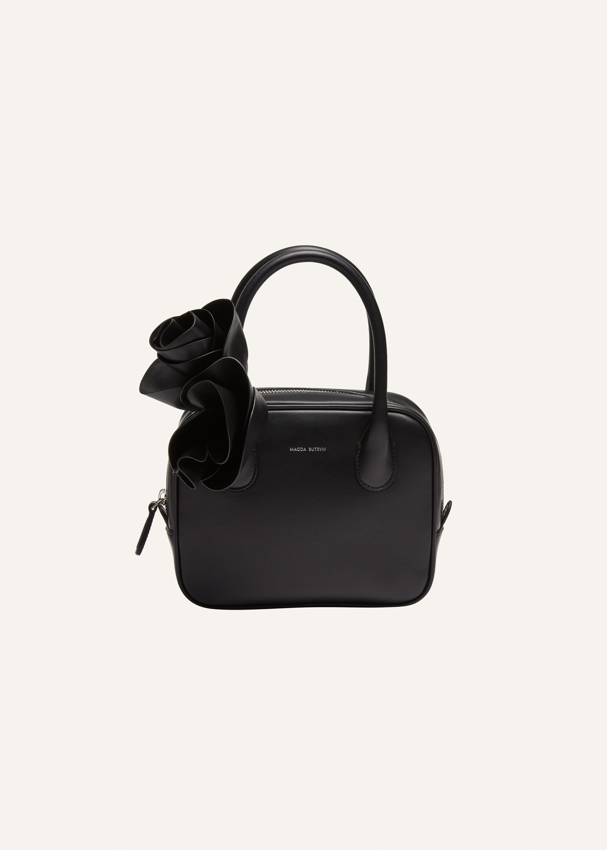 The Brigitte bag gets a new square shape. Inspired by the nostalgia of 90's while deeply rooted in Magda's family heritage. Its elegant silhouette, the roomy interior, two top handles and top zipper have been thoughtfully crafted in Italy. Adding a touch of on-brand dreaminess is the leather flower embellishment. Meticulously arranged and fixed onto the bag's handle. For an ideal finish curl the flower petals outward for a blooming rose effect on your bag. Details ID: 702524 Exterior: 100% Calf Leather. Interior: 100% Calf Leahter Sizing Approximate measurements: 14,5cm height, 18cm width, 5cm depth (at bottom), 10cm handle drop.