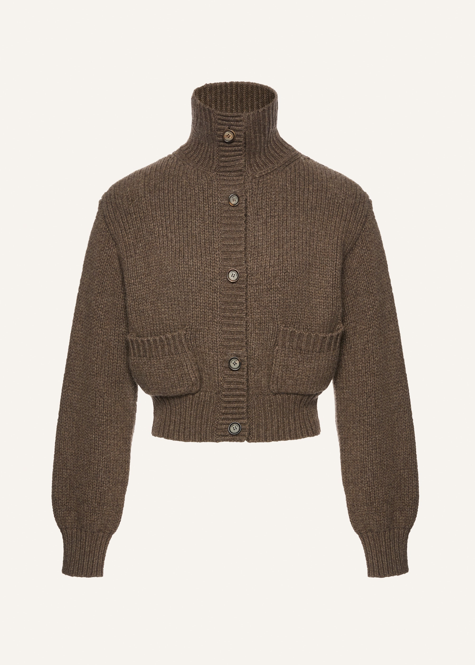 A chunky knit cardigan with a high button-up neck, cropped length, and exaggerated patch pockets at the front. The thick ribbed hem and cuffs add a sculptural finish to this seasonal staple. Details ID: 311925 Shell 100% Cashmere. Sizing This piece fits true to size. We recommend you get your regular size. Model is 177 cm and is wearing a size 34.