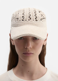 Hand-crocheted from 100% cotton in a soft cream hue. The intricate openwork design adds a touch of artisanal craftsmanship, while the structured visor keeps it casual and functional. Lightweight and breathable, it’s the perfect warm-weather accessory to elevate everyday looks with ease. Details ID: 983525 Shell 100% Cotton.