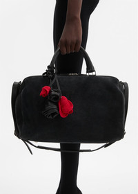 Handcrafted crochet rose charms attached to a sleek leather strap, designed as a delicate yet impactful accessory. These artisanal flowers bring a romantic touch to any look and are perfect for adding to a handbag, belt loop, or keychain. A signature blend of craftsmanship and romance. Available exclusively at magdabutrym.com and at the flagship boutique. Details ID: 981525 Flower: 100% Cotton, Belt 100% Sheep Leather. Sizing Approximate measurements: leather strap 40 cm, rose buds 6,5cm x 4,5cm.