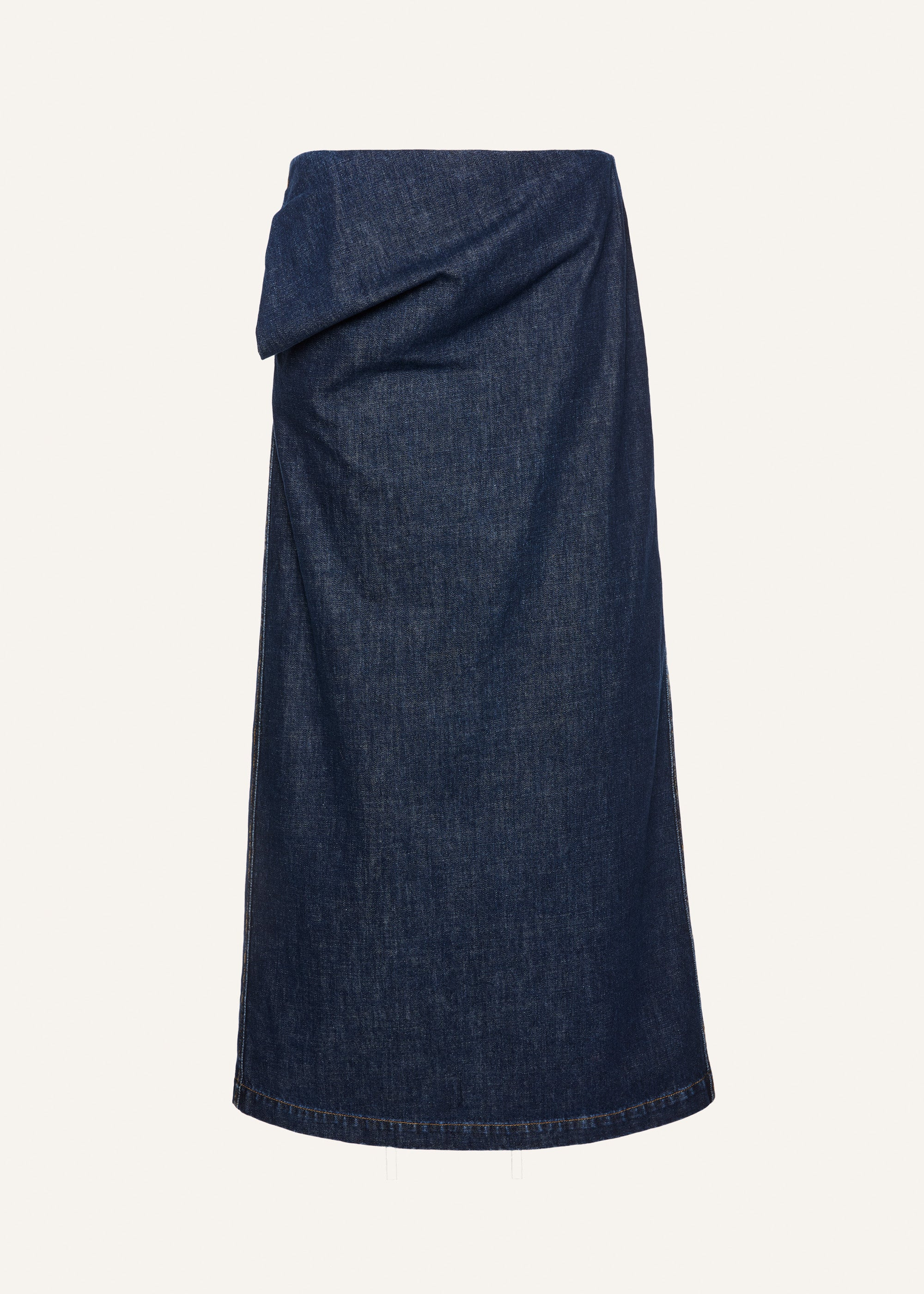 A ladylike midi skirt with a structured feel and a subtle asymmetric draped detailing, finished with a low waist. Details ID: 130925 Shell 100% Cotton. Sizing This piece fits true to size. We recommend you get your regular size. Model is 177 cm and is wearing a size 34.