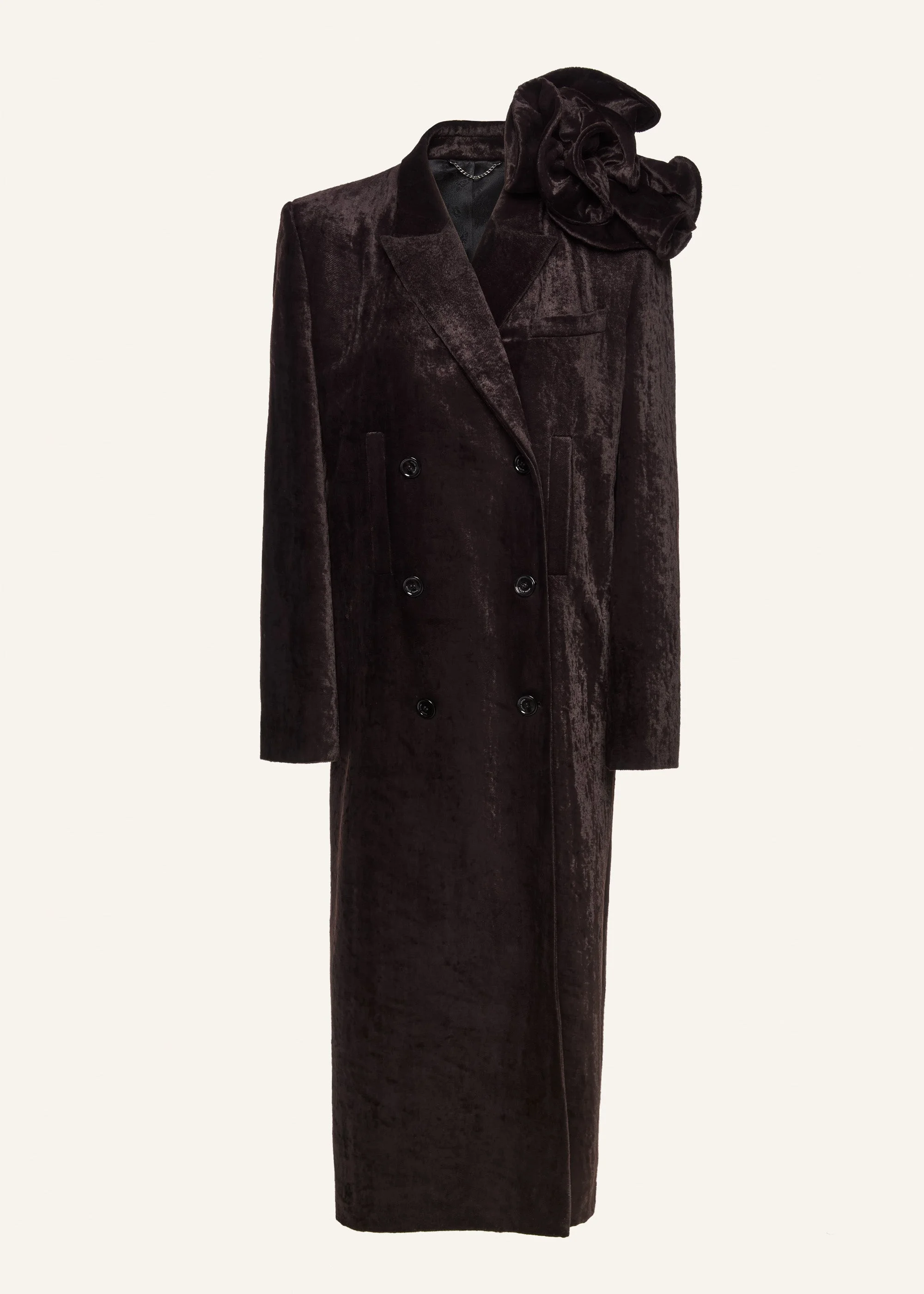 Magda Butrym’s signature outerwear silhouette returns in brown velvet. Detailed with peak lapels, flap pockets, and a tonal oversized flower applique at the shoulder. Details ID: 108925 Shell 70% Acetate 30% Cotton. Lining 100% Silk. Sizing This piece fits true to size. We recommend you get your regular size. Model is 177 cm and is wearing a size 34.