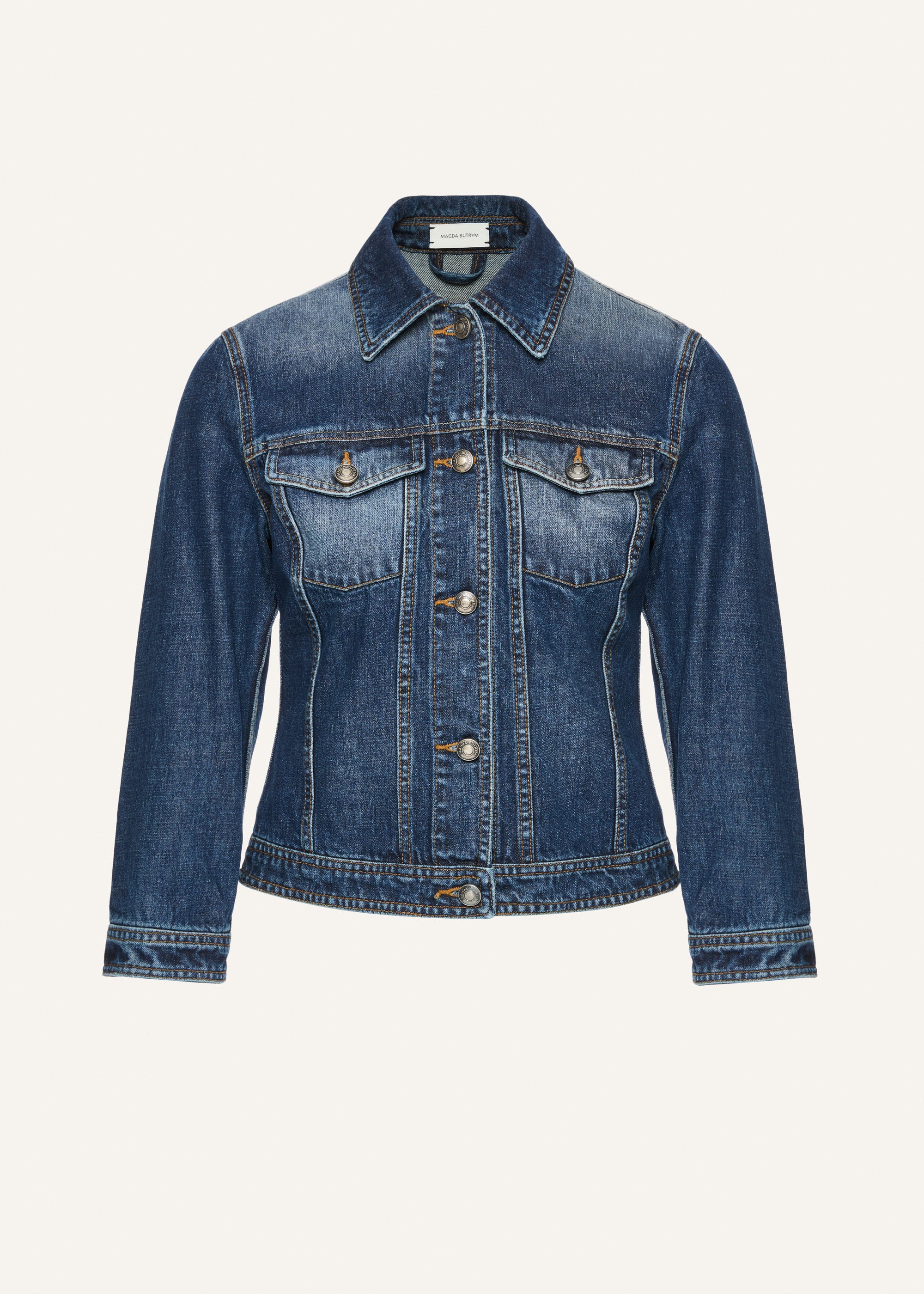 This classic denim jacket is reimagined with a feminine, contoured fit that flatters the silhouette. Chest flap pockets, metal button closures, and structured seams lend an authentic touch, while the branded embroidery at the back adds a signature finish. Details ID: 142925 Shell 100% Cotton. Sizing This piece fits true to size. We recommend you get your regular size. Model is 177 cm and is wearing a size 34.
