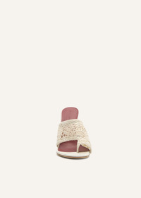 Flare heel thong sandals in crochet cream