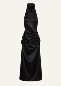 A halter apron top crafted from a luxurious blend of silk and wool, featuring a high neckline and open back with tie closure. Sculptural floral appliques at the hips add signature Magda Butrym femininity, while the draped silhouette enhances the waist. Best styled layered over silk pants. Details ID: 220925 Shell 74% Silk 26% Wool Sizing This piece fits true to size. We recommend you get your regular size. Model is 177 cm and is wearing a size 34.