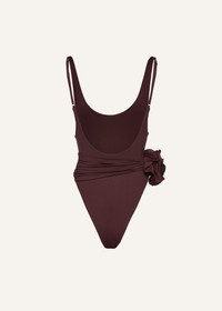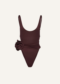 Slim fit swimsuit with adjustable thin straps. The front is adorned with draping just below the waist and a fixed flower. The deep decolte in the front and the back create beautiful lines on this versatile swimsuit. Details ID: 327525 Shell 91% Polyamide 9% Elastane Sizing This piece fits true to size. We recommend you get your regular size. Model is 174 cm and is wearing a size 34.