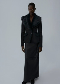 Fitted shearling blazer an exaggerated fur collar. Designed to frame the body with a tailored shape, finished with flap pockets and tonal fur-trimmed edges. Details ID: 172925 Shell 100% Sheep Leather. Sizing This piece fits true to size. We recommend you get your regular size. Model is 177 cm and is wearing a size 34.