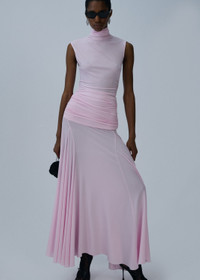 High-neck cupro midi dress in pink