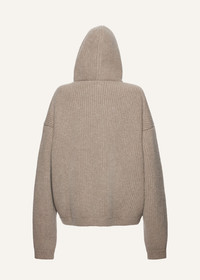 Hooded knit cardigan in taupe