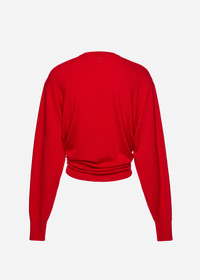 Lightweight wool longsleeve featuring a gathered front with a central knot detail at the waist. Designed with detachable shoulder pads for adjustable structure and a subtle logo embroidered on the back yoke. Details ID: 352426 Shell 100% Wool Sizing This piece has a regular fit. Model is wearing a size 34.