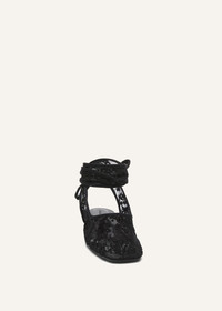 A modern round-toe ballet flat crafted in Italy from delicate floral lace, offering a barely-there feel with a romantic finish. The sheer mesh upper wraps elegantly around the ankle with matching ties, while a soft leather sole ensures all-day comfort. A graceful take on feminine edge. Details ID: 519925 Upper: 84% Polyamide 16% Elastane, Embroidery 90% Cotton 10% Polyester Insole, Sole: 100% Calf Leath Sizing This piece fits true to size. We recommend you get your regular size.