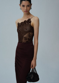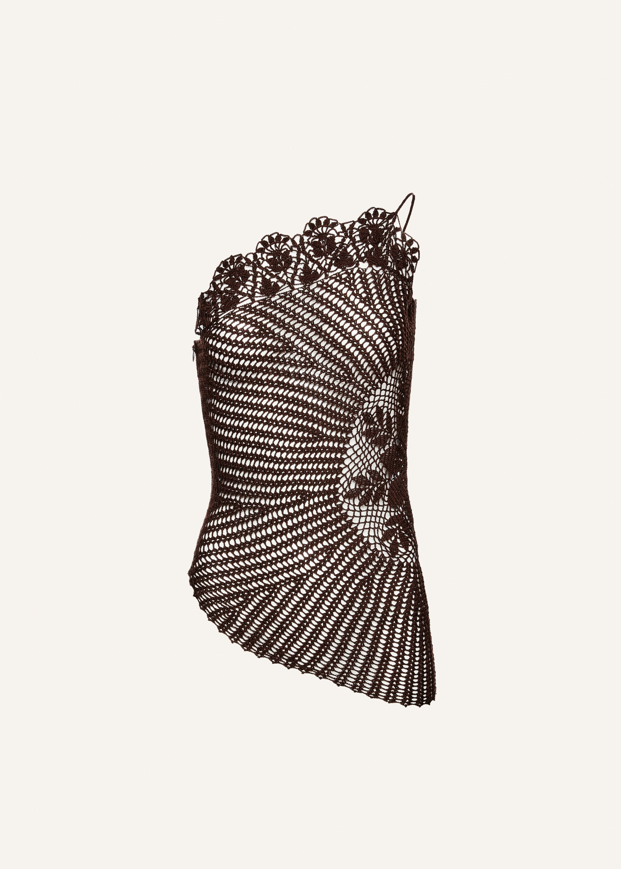Lace crochet one shoulder top in brown