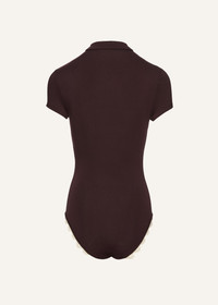 Lace-detail polo bodysuit in brown