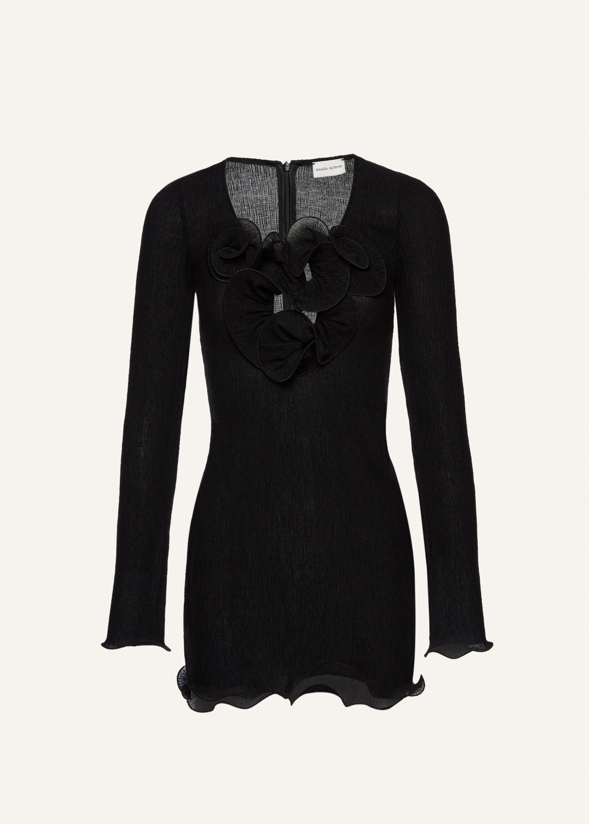 Magda Butrym’s beachwear offering includes a signature long-sleeve mini dress made from crepe fabric, with floral ruffle detailing at the chest to create a deep neckline. Details ID: 304525 Shell 59% Lyocell 40% Polyester 1% Elastane. Sizing This piece fits true to size. We recommend you get your regular size. Model is 174 cm and is wearing a size 34.