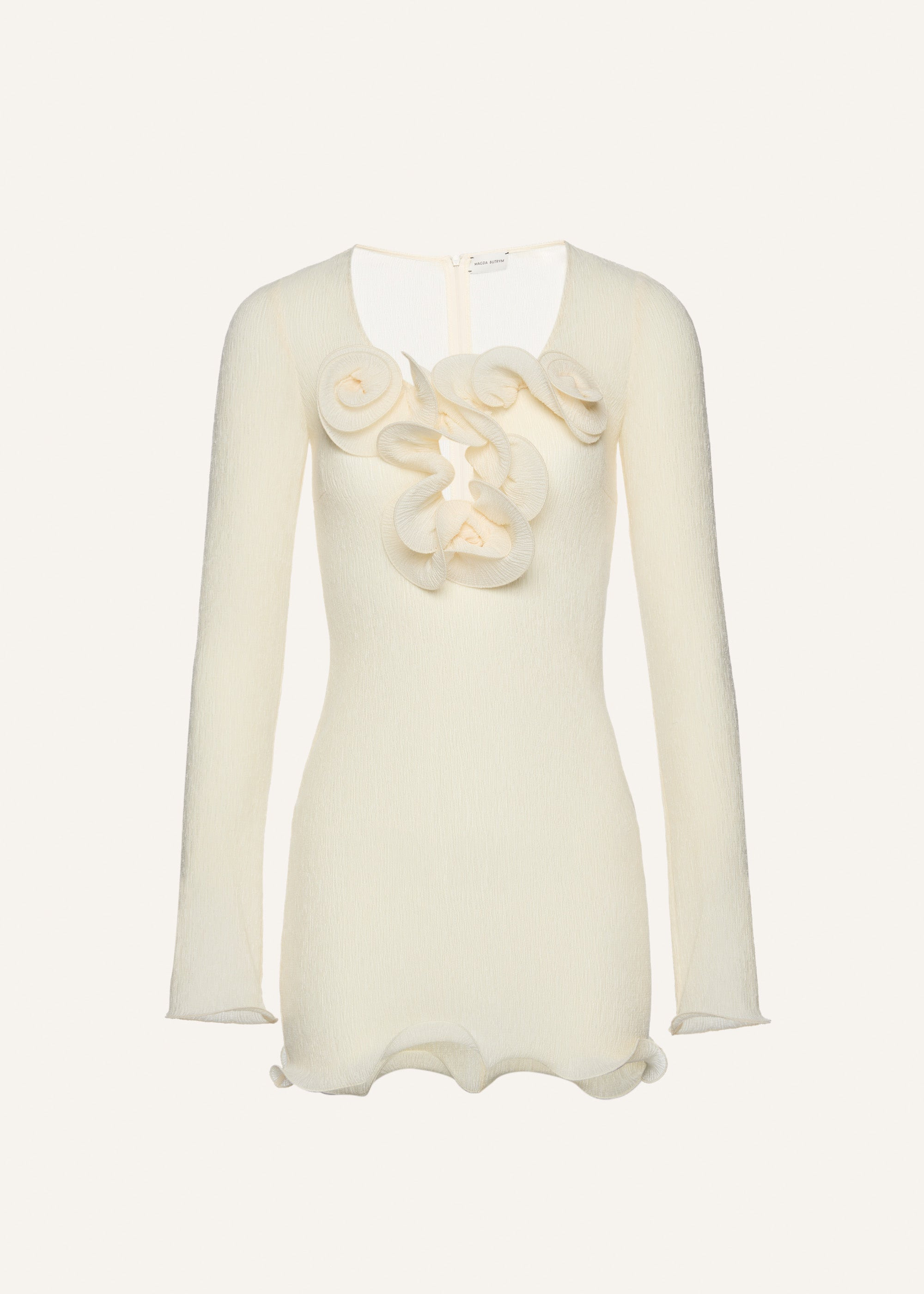 Magda Butrym’s beachwear offering includes a signature long-sleeve mini dress made from crepe fabric, with floral ruffle detailing at the chest to create a deep neckline. Details ID: 305525 Shell 59% Lyocell 40% Polyester 1% Elastane. Sizing This piece fits true to size. We recommend you get your regular size. Model is 182 cm and is wearing a size 34.