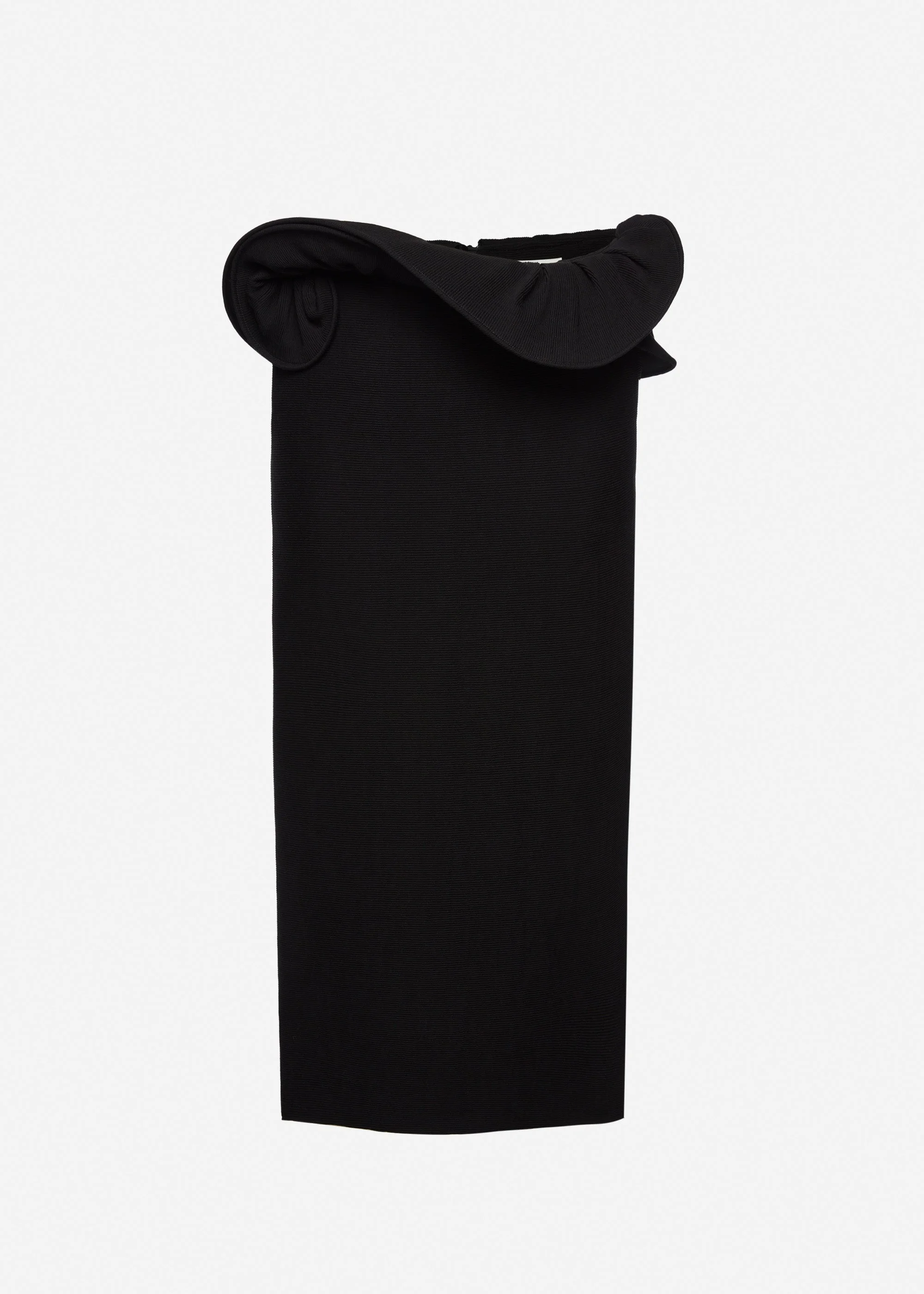 A mid-calf pencil skirt featuring a lowered waistline, finished with decorative overlays. On the right front, a sculptural, hand-twisted flower detail adds an artisanal touch. The skirt fastens with a concealed zip at the center back, finished with a subtle slit for movement. Details ID: 176426 Shell 90% Viscose 10% Polyamide. Lining 100% Silk Sizing This piece has a regular fit. Model is wearing a size 34.