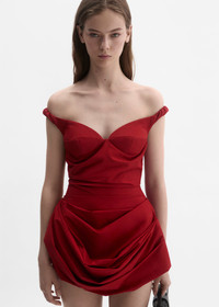 Off-shoulder bustier dress in red